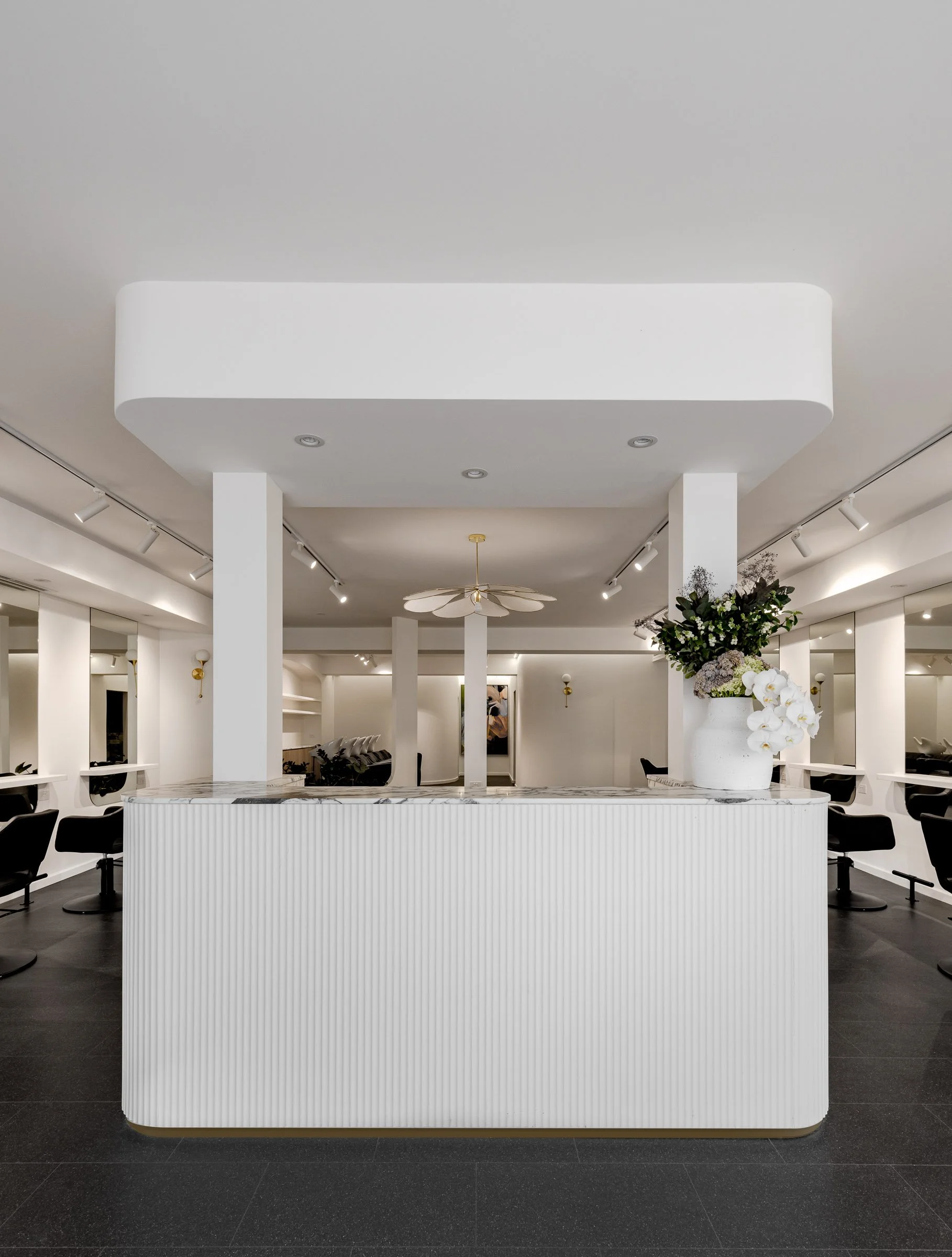 Loxx Salon, a serene haven of timeless beauty and luxury, seamlessly marries classic contemporary design elements with the salon's dedication to nature and natural products. The inspiration behind this project is rooted in nature's calming beauty and the philosophy of Loxx Salon.